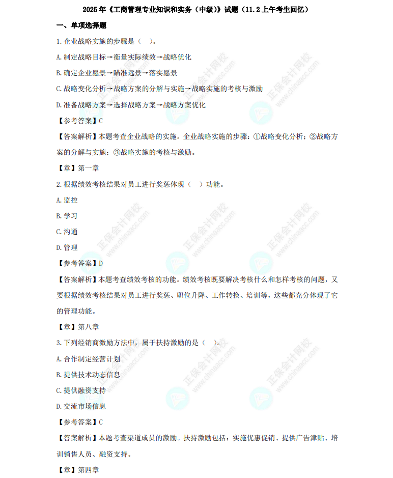 2025年中级经济师《工商管理》科目考试终于结束啦,同学们考的如何呢?正保会计网校特整理了2025年中级经济师考试试题及参考答案,供大家参考,一起来看看吧!
