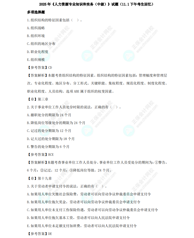 2025年中级经济师《人力资源》科目考试终于结束啦,同学们考的如何呢?正保会计网校特整理了2025年中级经济师考试试题及参考答案,供大家参考,一起来看看吧!