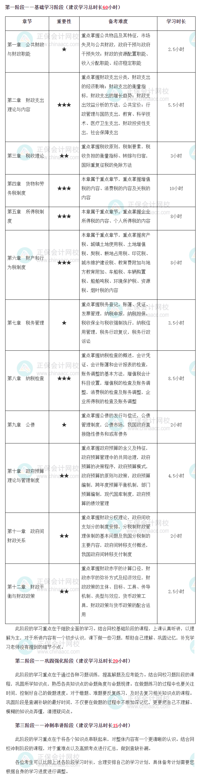 那么《中级财税》科目学够多长时间比较合适呢?网校老师根据各章节的重要性以及备考难度给大家整理了建议学习时长,我们一起看一看吧!