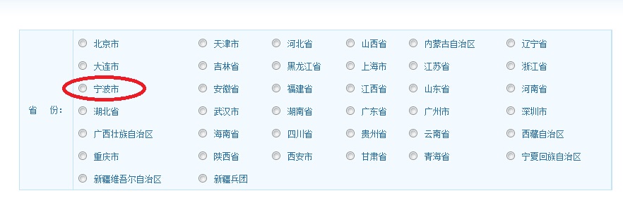 7、省份里面,选择“宁波市”(跟浙江省并列)