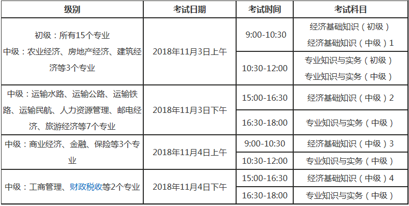 (一)本次考试时间为2018年11月3日、4日,按专业分两天上下午4个批次实施,具体安排如下: