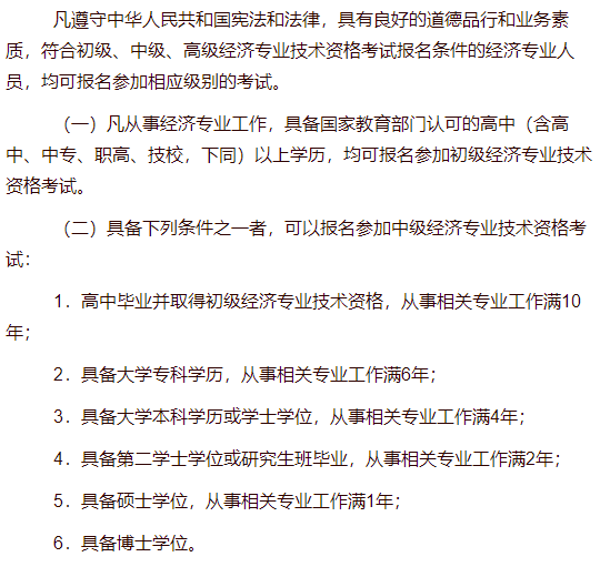 根据经济专业技术资格考试实施办法可知,初中级经济师报考人员须符合相应要求,才可报名参加考试。报考条件如下: