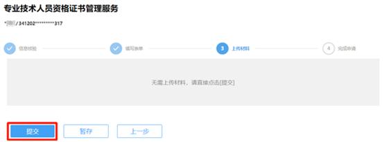 1.通过浏览器打开安徽政务服务网阜阳分厅,搜索“专业技术人员资格证书管理服务”,或直接点击链接(http://fy.ahzwfw.gov.cn/bog-bsdt/static/workProcess/components/applicationMaterial.html?ssqdCode=2e1ef02546b543e6ab5b8f718e1b5a12),即可进入我市“专业技术人员资格证书管理服务”事项办理界面,点击右侧“在线办理”。