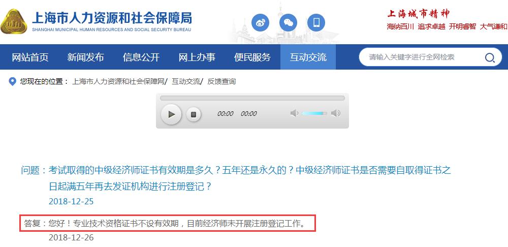 但该公告发布的时间已经比较久了,不少已拿到证书的考生表示,当地并没有要求大家进行注册登记,应该是办理和领取证书时就默认已经进行了注册登记。比如上海人事网,2018年经济师考试成绩查询结果出来之后,就有明确回复专业技术资格证书不设有效期,目前经济师未开展注册登记工作。