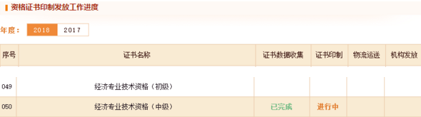 此外,官网还上线了经济师证书印制发放的工作进度: