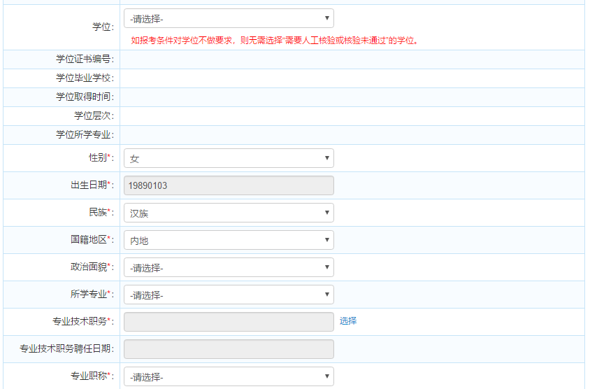 注意:今年报考条件可在填写报名表时直接选择自己符合的那一项。带“*”的为必填项。