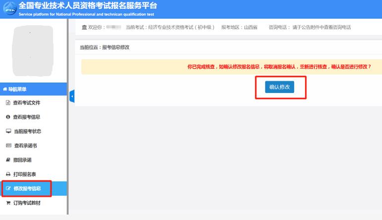 考生在报名地考试机构设置的时间节点之前都可以取消核查及确认进行信息修改操作:考生点击左侧菜单【修改报考信息】进入取消报名确认界面,点击【确认修改】按钮可以取消你的核查状态及确认状态,进行报名信息修改操作。
