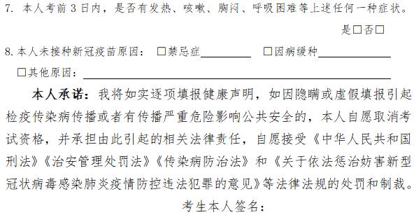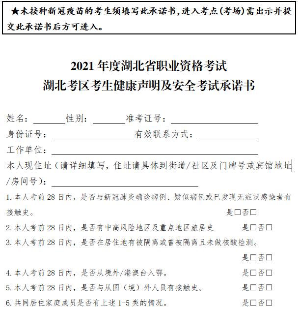 2021年度湖北省职业资格考试考生健康声明及安全考试承诺书