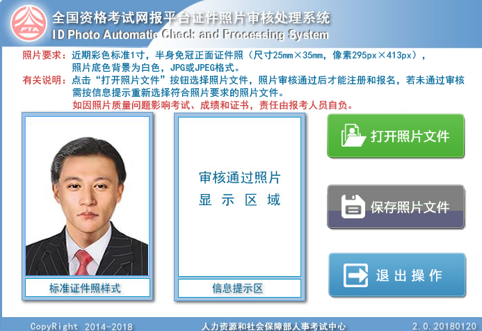 再通过中国人事考试网照片审核工具在照片显示区域显示照片效果,照片没有问题的话,再保存照片文件。再进行中国人事考试网上传照片位置上传即可。