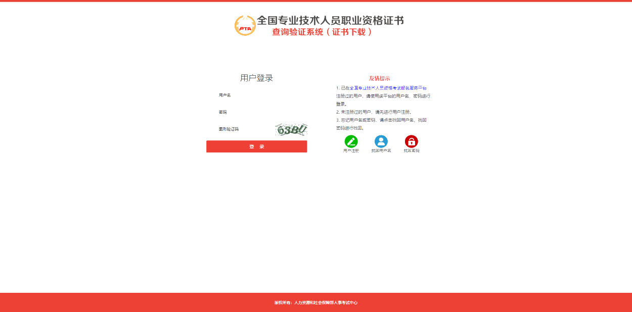 已在中国人事考试网“全国专业技术人员资格考试报名服务平台”注册过的持证人员,请直接使用该平台的用户名、密码进行登录。