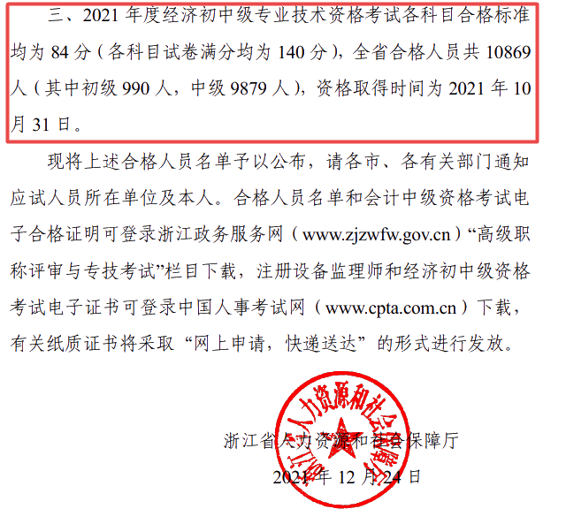 浙江2021年初中级经济师证书资格取得时间是什么时候?