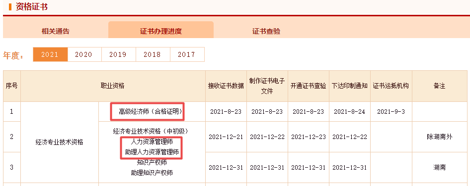 因此,初中级经济师人力资源专业证书名称分别为助理人力资源管理师、人力资源管理师。高级经济师人力资源管理考试合格,发放的是高级经济师合格证明,需要评审过后才可获得高级经济师职称。