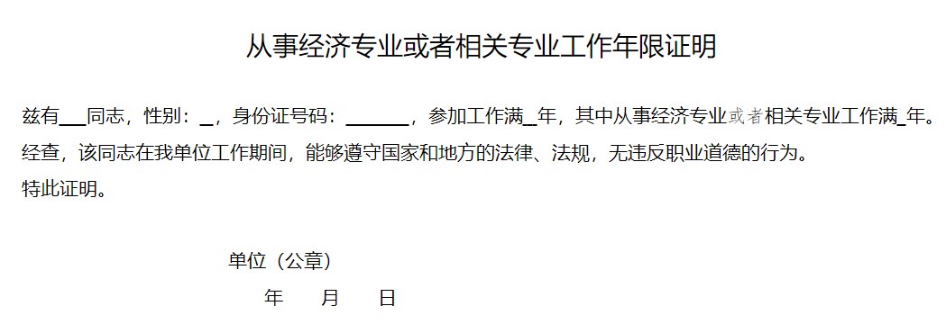 2. 从事经济专业或者相关专业工作年限证明