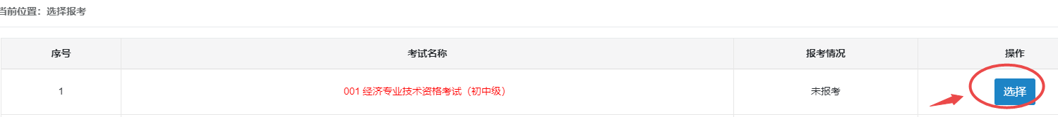 步骤3:选择考试项目“001 经济专业技术资格考试(初中级)”