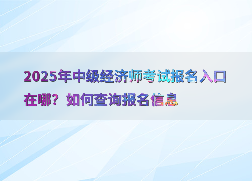 2025年中级经济师考试报名入口在哪里?2025年中级经济师考试报名入口为中国人事考试网。