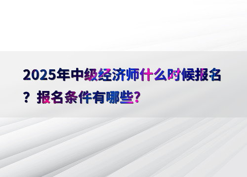 2025年中级经济师的报名时间预计为**7月23日-8月13日**,各地具体报名时间可能略有差异,报名方式均为网上报名,考生需在中国人事考试网完成相关操作。