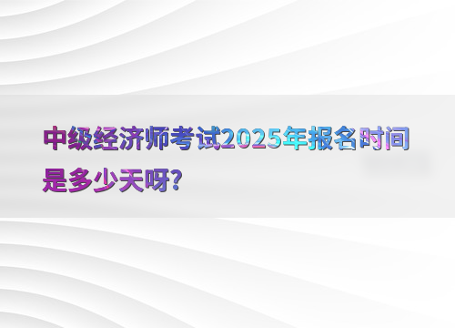 2025年中级经济师考试的报名时间预计从7月23日开始,至8月13日结束,具体时长为22天。