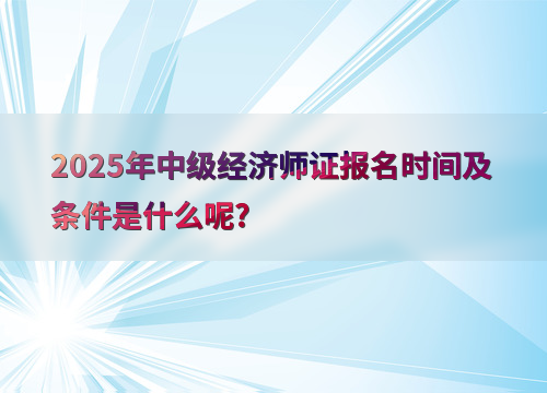 2025年中级经济师的报名时间预计在7月23日至8月13日之间,各地的具体报名时间可能会有所不同。