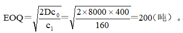 某企业每年需要某种原材料8000吨,单次订货费用为400元,每吨年保管费为160元,则该企业的经济订货批量为( )吨。