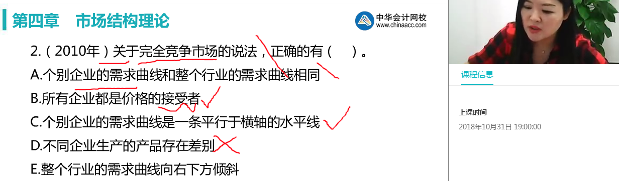 【解析】本题考查完全竞争市场中生产者的行为。在完全竞争市场上,整个行业的需求曲线和某个企业的需求曲线是不同的。参见教材P27。