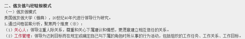 【解析】本题考查俄亥俄模式。高度人际取向的领导者帮助下属解决个人问题,友善而平易近人,公平对待每一个下属,关心下属的生活、健康、地位和满意度。高度工作取向的领导者关注员工的工作,要求维持一定的绩效水平,并强调工作的最后期限。参见教材P16。