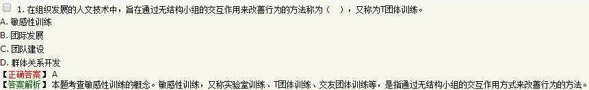 在组织发展方法中,关于敏感性训练的说法,错误的是( )
