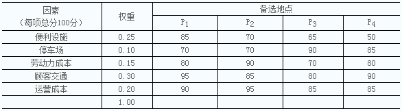 运用因素评分法评价某商品流通企业的选址,其评价因素、权重及四个备选地点的得分如下表所示。以最大综合得分为判断依据,该商品流通企业理想的选址地点为( )。