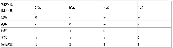 根据一一对比法,下列员工绩效水平最高的是( )。
