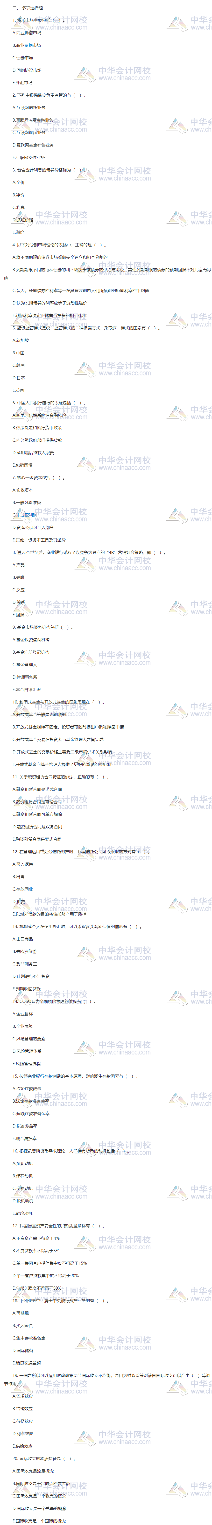 中级经济师《金融》考前模考卷多选题——题干: