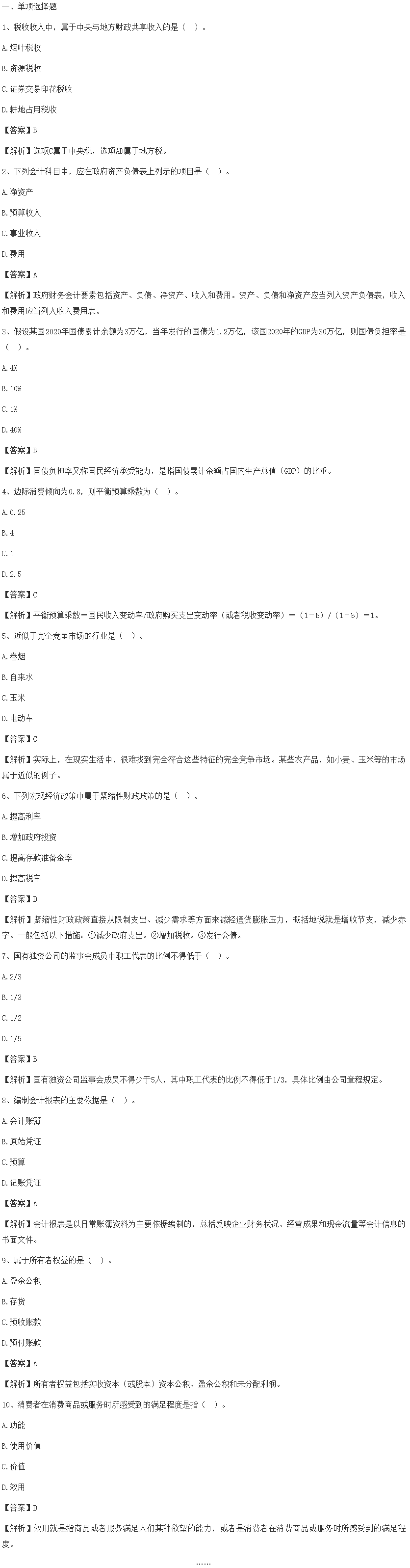 2021中级经济师《经济基础知识》试题及答案10.30下午(考生回忆)