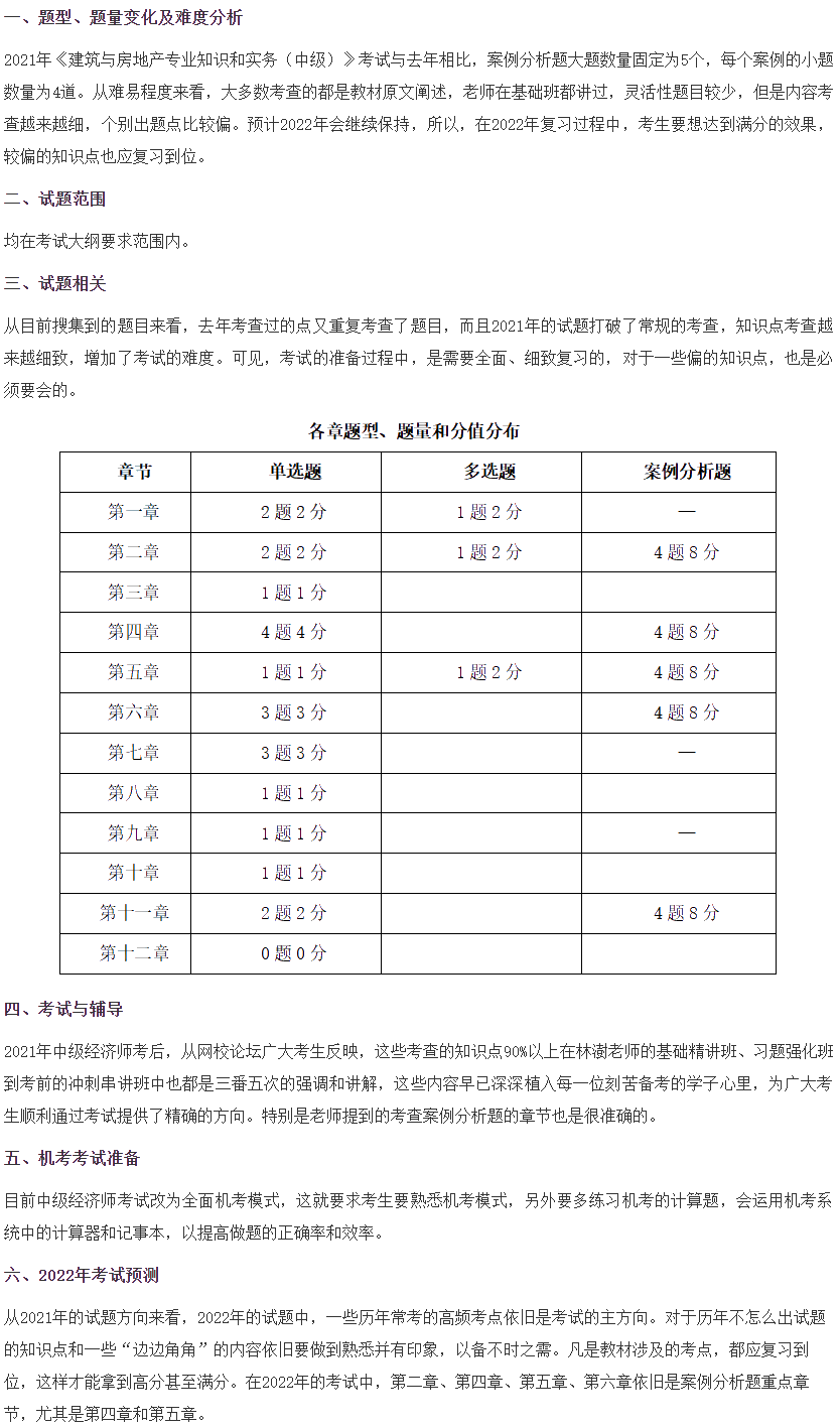 2021年中级经济师《建筑与房地产》考情分析及2022考情预测