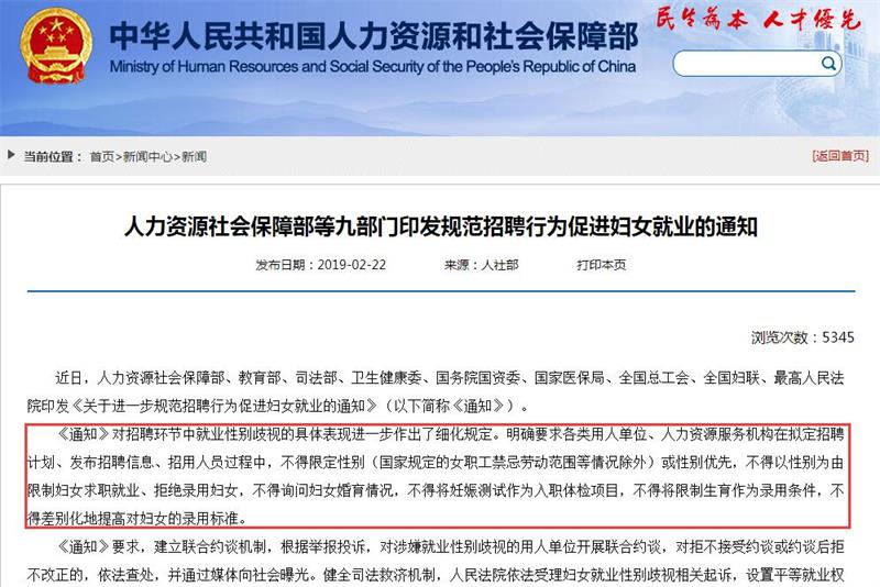 最最最重要的是:人社部、教育部等九部门近日印发《关于进一步规范招聘行为促进妇女就业的通知》,要求在招聘环节中: