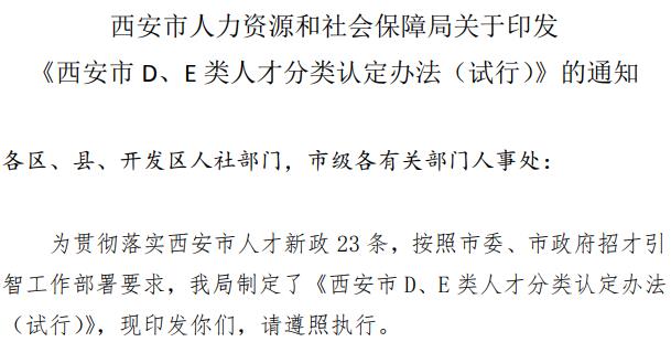 根据《西安市D、E类人才分类认定办法(试行)》文件要求可知,西安市E类人才为:产业发展与科技创新类实用性人才和特殊技能人才。包括具有硕士、学士学位,中级职称、技师等相应职级的人员。