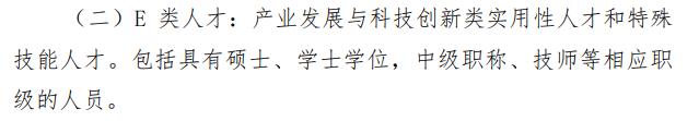 西安市E类人才包括具有硕士、学士学位,中级职称、技师等相应职级的人员。