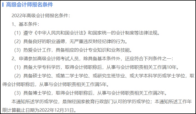 2022年高级会计师考试报名条件如下: