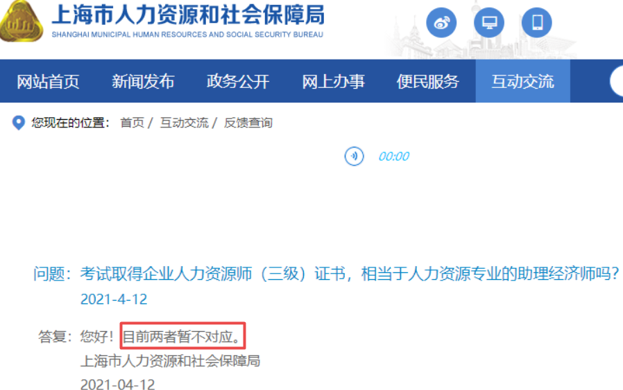 此外,上海市人力资源和社会保障局在回复学员问题时,明确表示“企业人力资源管理师证书和经济师人力资源管理专业两者不对应的”!