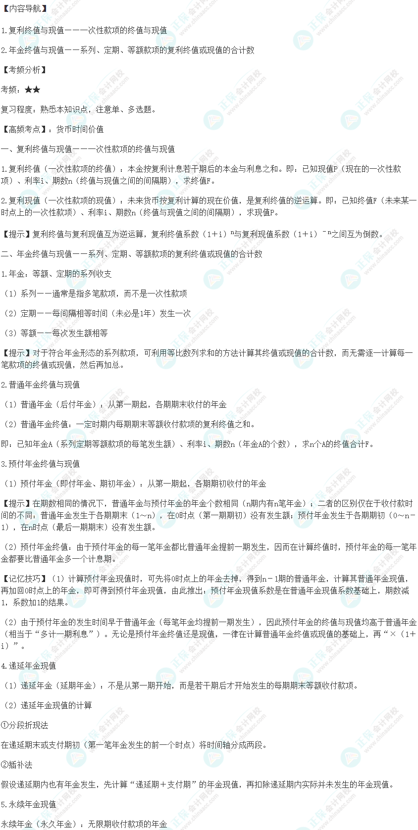 以下是2024初级审计师《审计相关基础知识》高频考点:货币时间价值