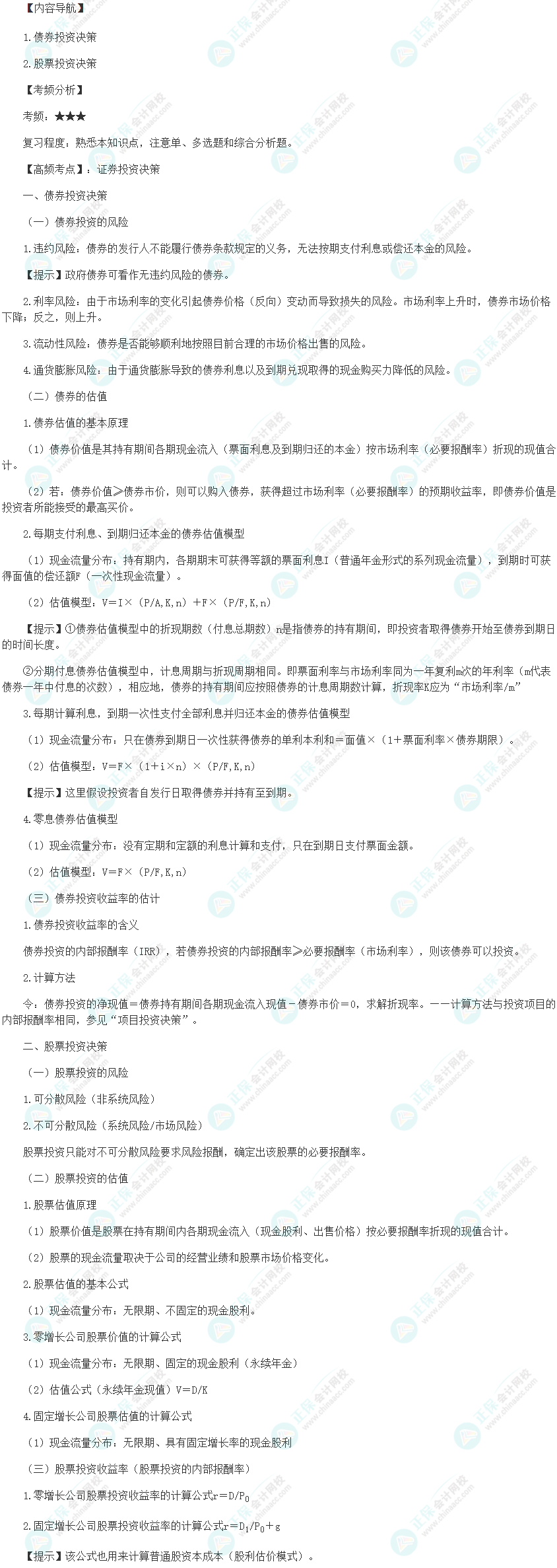 以下是2024初级审计师《审计相关基础知识》高频考点:证券投资决策