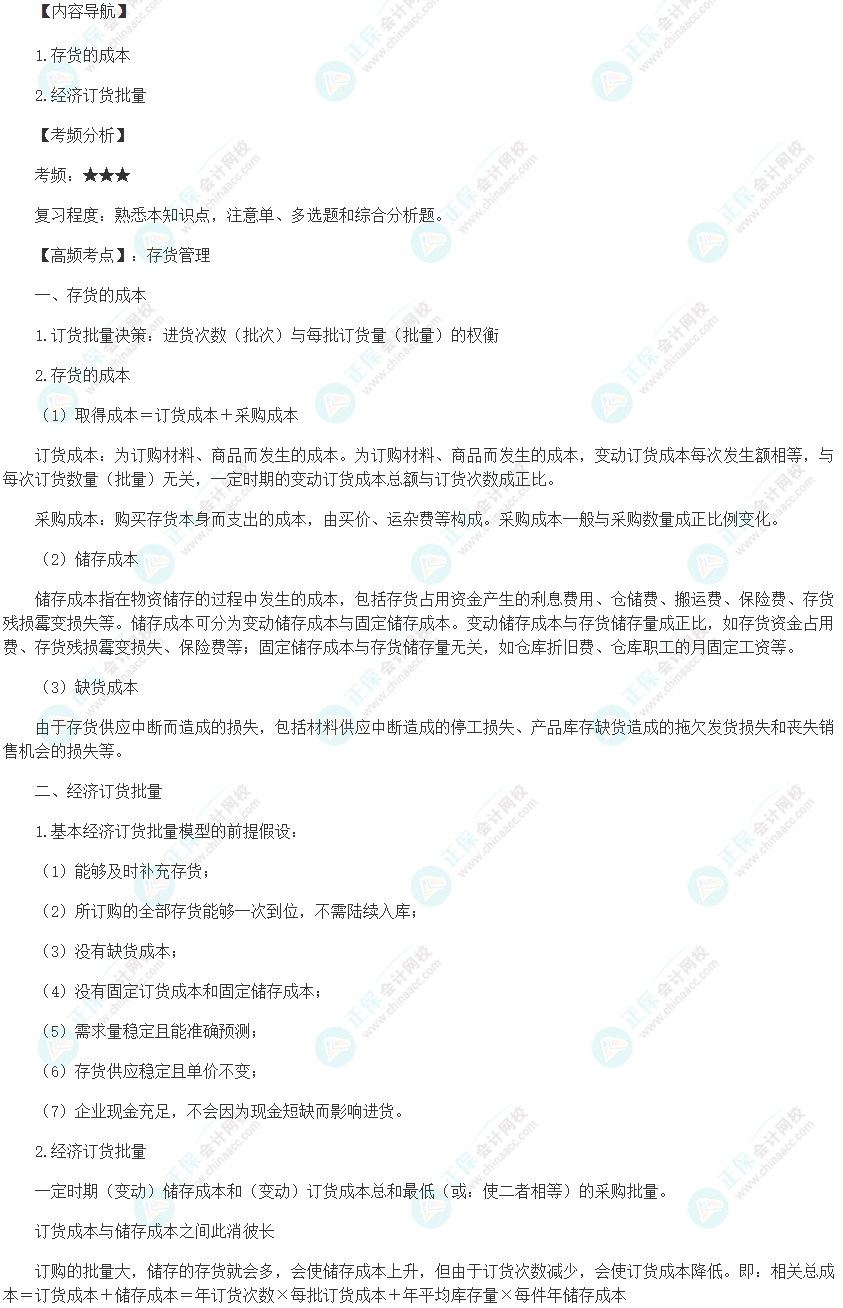 以下是2024初级审计师《审计相关基础知识》高频考点:存货管理
