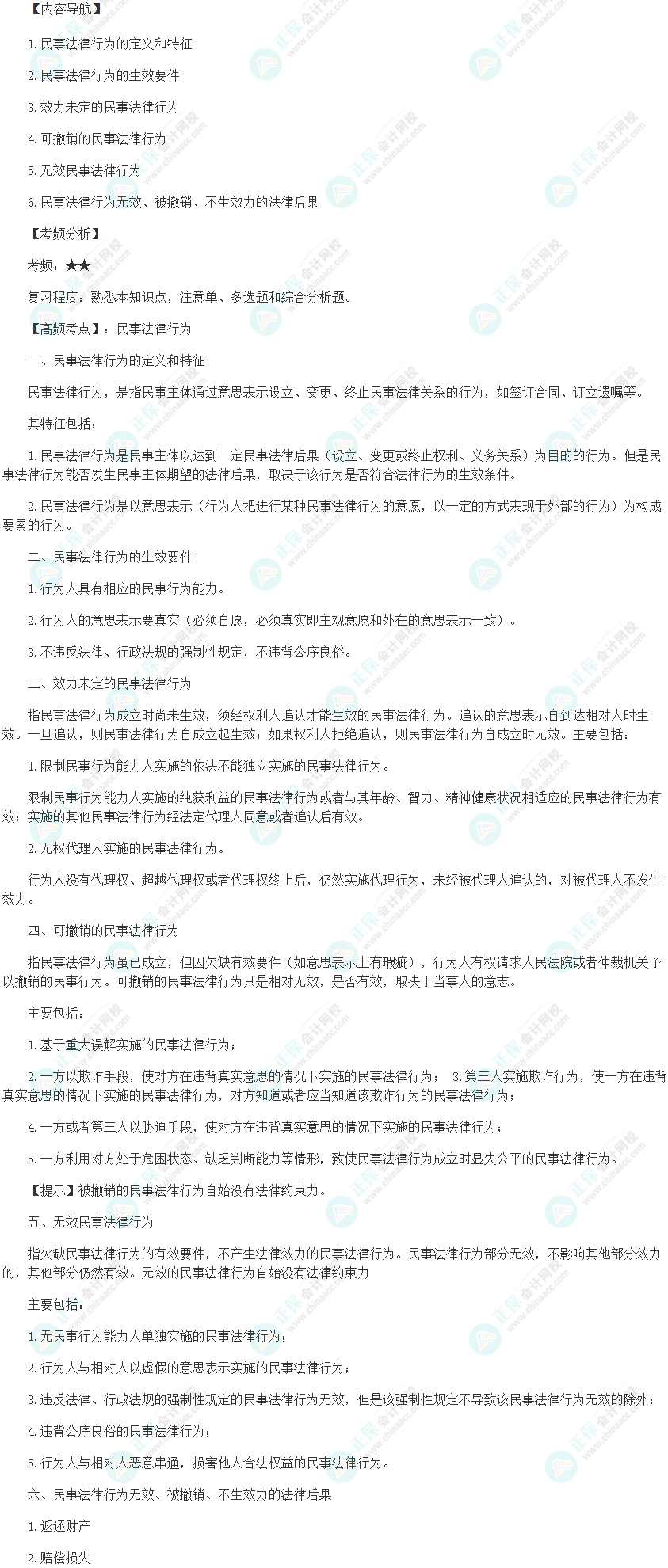 以下是2024初级审计师《审计相关基础知识》高频考点:民事法律行为