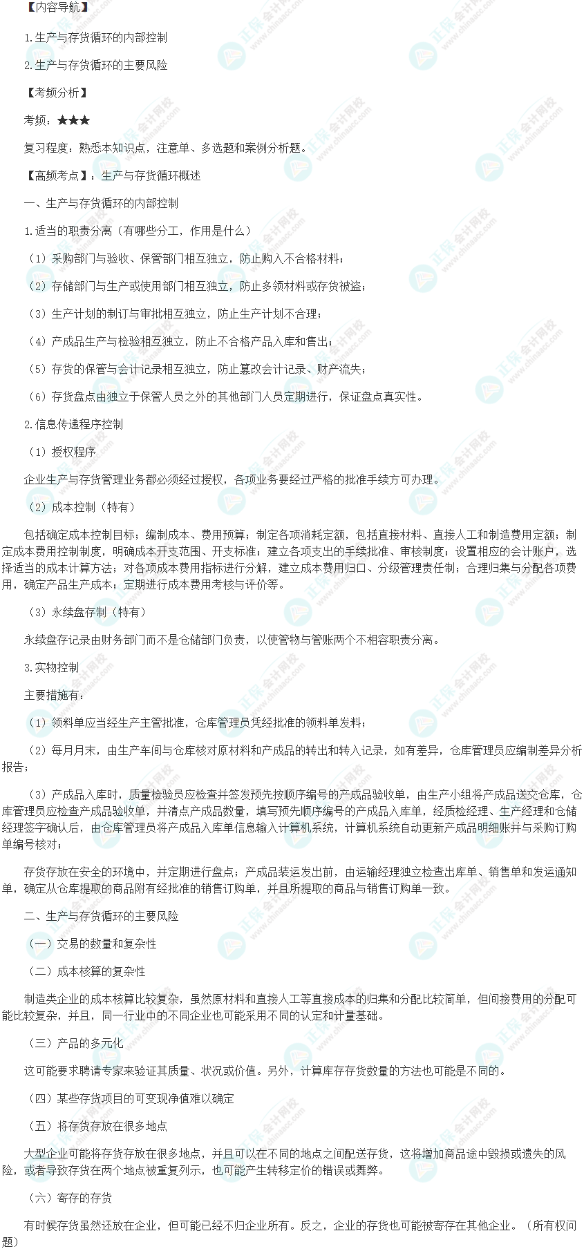 以下是2024初级审计师《审计理论与实务》高频考点:生产与存货循环概述