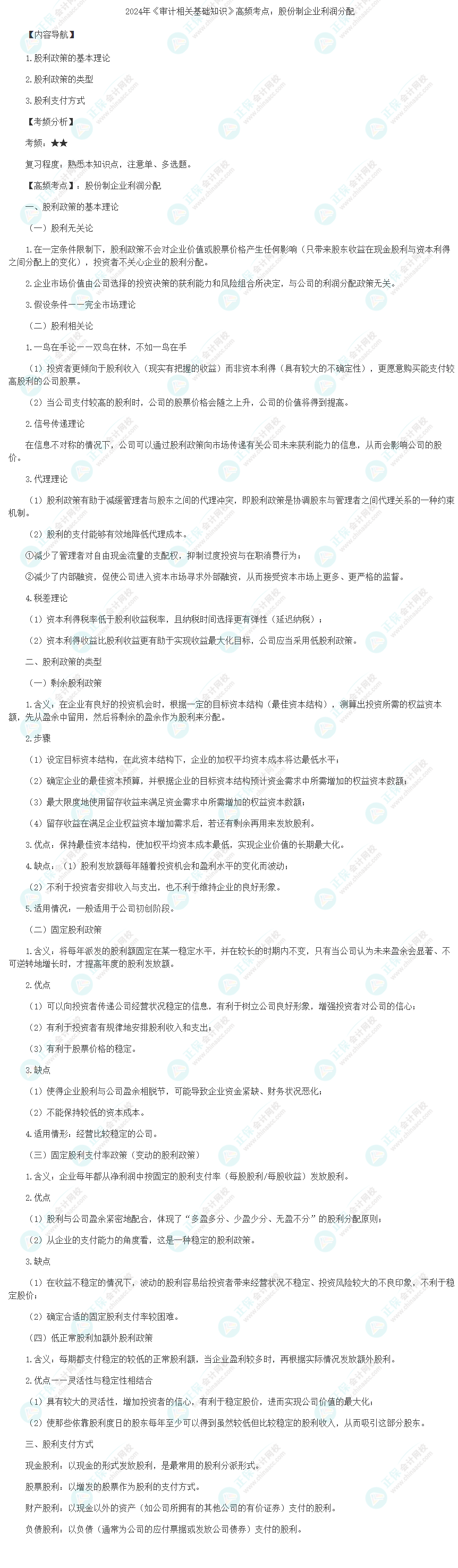 以下是2024中级审计师《审计相关基础知识》高频考点:股份制企业利润分配
