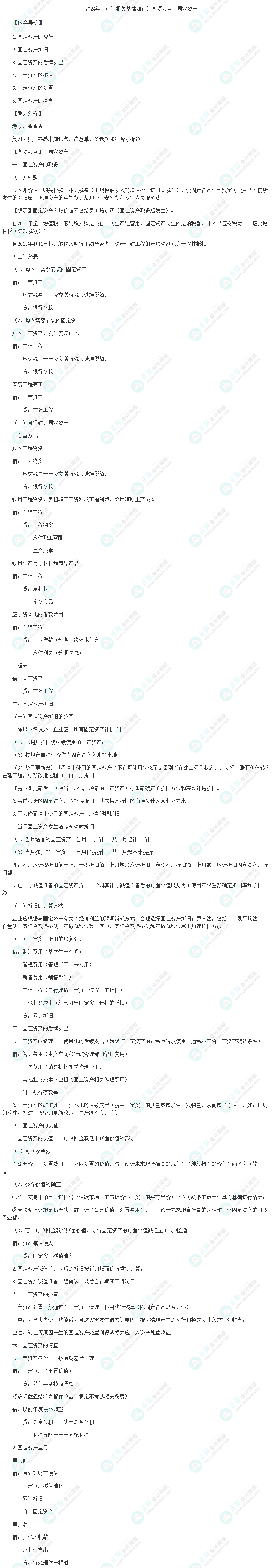 以下是2024中级审计师《审计相关基础知识》高频考点:固定资产
