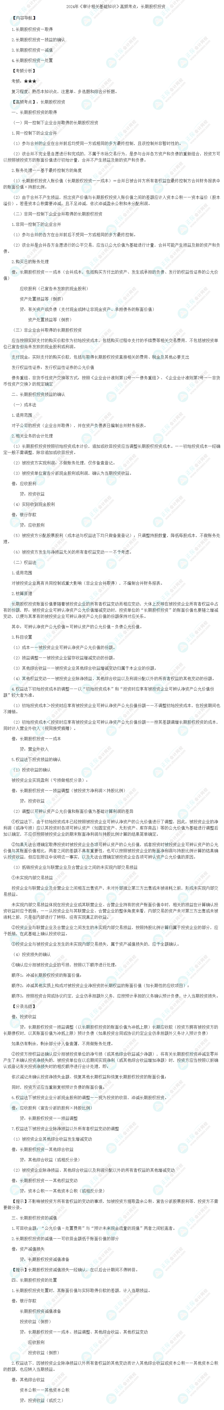 以下是2024中级审计师《审计相关基础知识》高频考点:长期股权投资