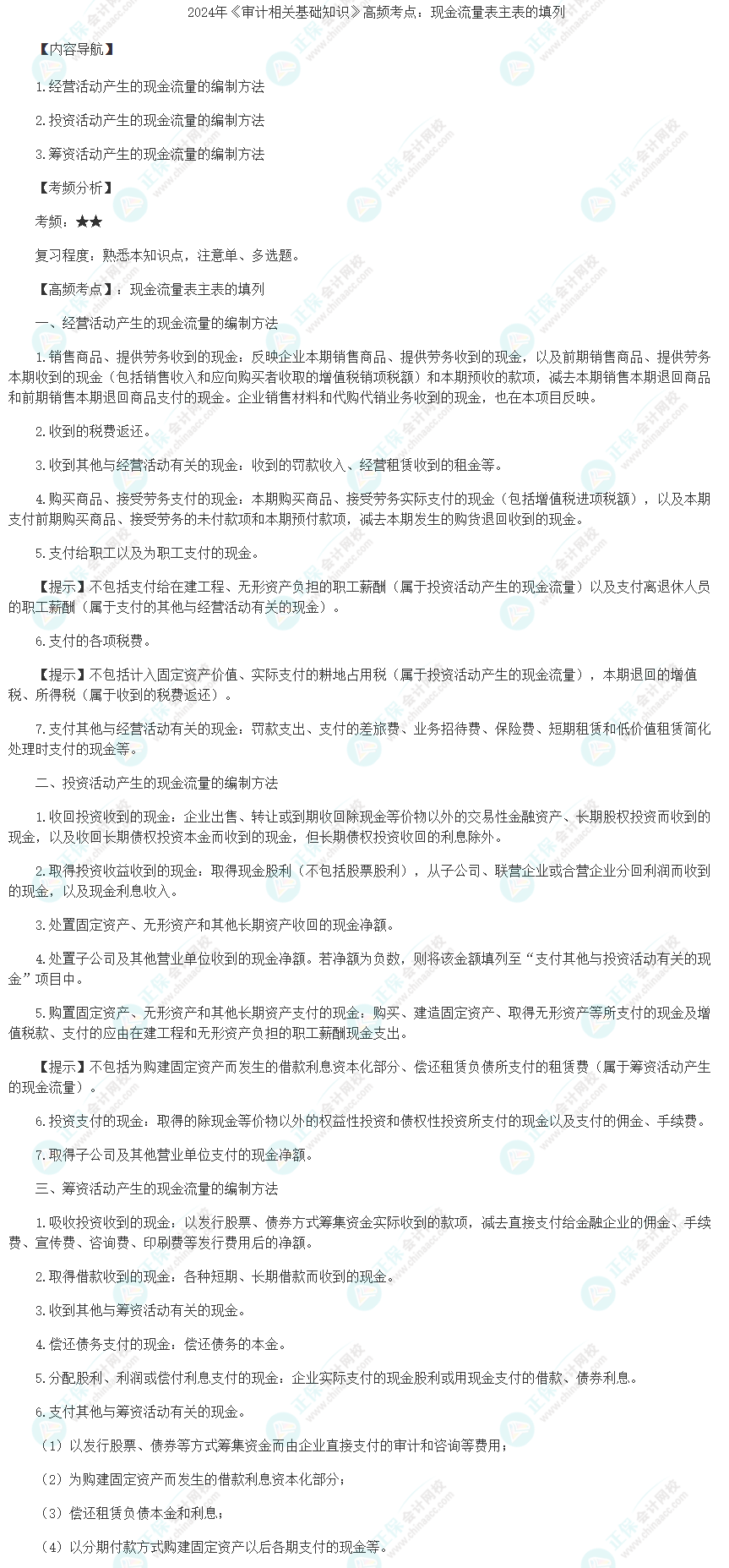 以下是2024中级审计师《审计相关基础知识》高频考点:现金流量表主表的填列