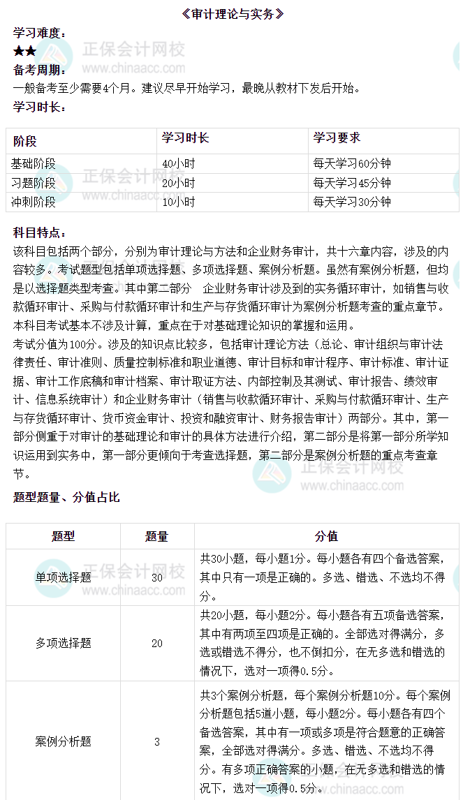 在备考审计师前,了解各科科目特点很重要,了解考试难度等内容,再观察自己的学习条件,综合考虑这些因素后再制订学习计划,才能更高效的学习。