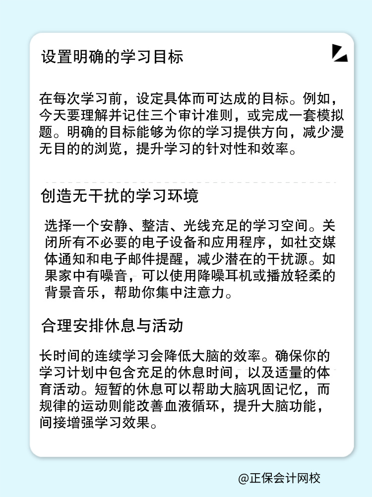 记住,每一步的努力都是向着梦想的迈进,每一次的挑战都是对自我能力的磨砺。在审计师备考的征途中,让网校做你坚实的后盾,站在巨人的肩上起跑!养成良好学习习惯,排除万难,坚持上考场!了解课程>