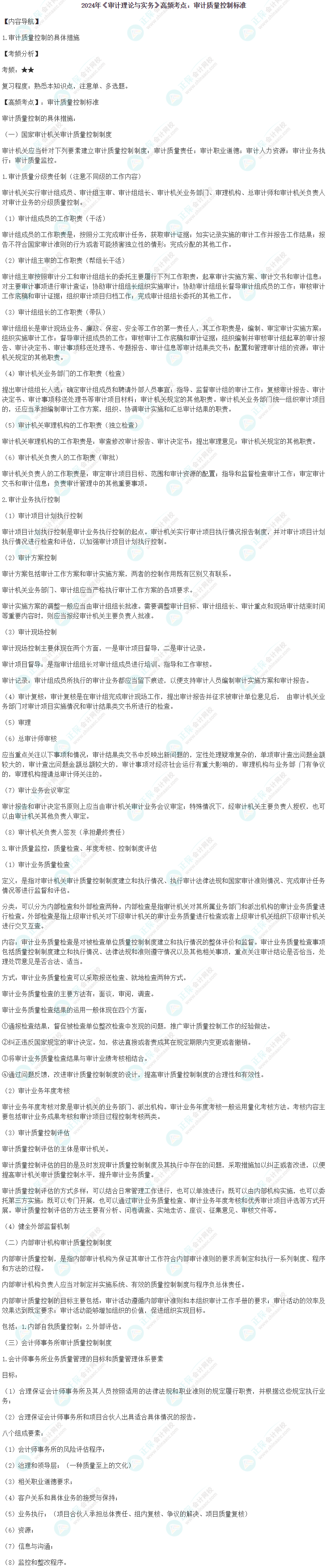 以下是2024中级审计师《审计理论与实务》高频考点:审计质量控制标准