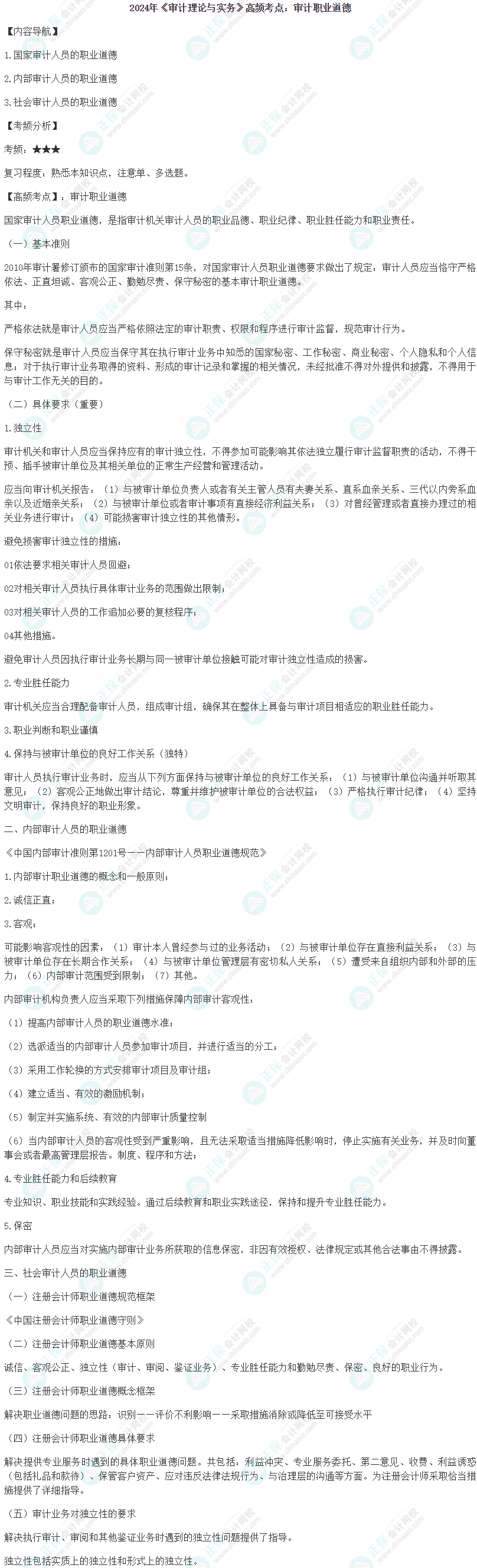以下是2024中级审计师《审计理论与实务》高频考点:审计职业道德