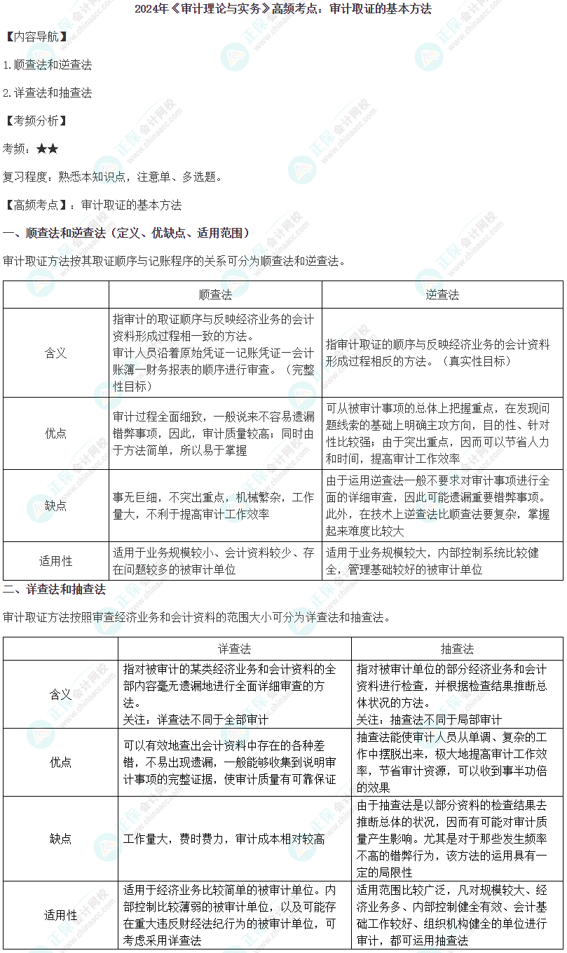 以下是2024中级审计师《审计理论与实务》高频考点:审计取证的基本方法